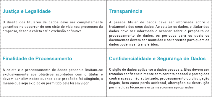 Os principios abaixo estabelecem o compromisso institucional com a privacidade e a proteção dos dados tratados na empresa e definem a orientação básica para que seja atingida a completa conformidade com o LGPD - Lei Geral de Proteção de Dados.
